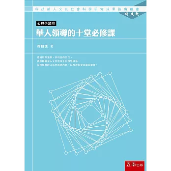 在文化型塑領導的論點上,本書詳述了華人文化情境下的種種領導風格,包括家長式領導、差序式領導、威權領導、仁慈領導、德行領導、謙遜領導,以及神聖領導等等,一方面舖陳其文化來源與內涵,一方面則討論其與領導效能的關係,而可對華人領導有一個通盤的理解。最後,則詳述這些領導風格是如何被發現與提出的,其實際作法為何,並指出本地研究者要如何透過本土題材的探討,來對國際學術社群作出貢獻,且引領風騷。